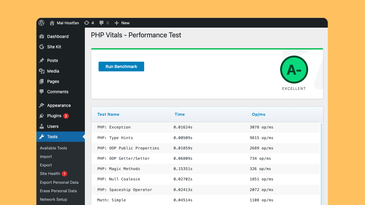 Sometimes it can be difficult to tell if your host is helping or hindering your loading speeds. If your website is built with WordPress, you can install the PHP Vitals plugin to gauge how fast your hosting really is. It works by separating out your hosting infrastructure from everything else and scoring its performance, regardless of the code and website that you’re running.
